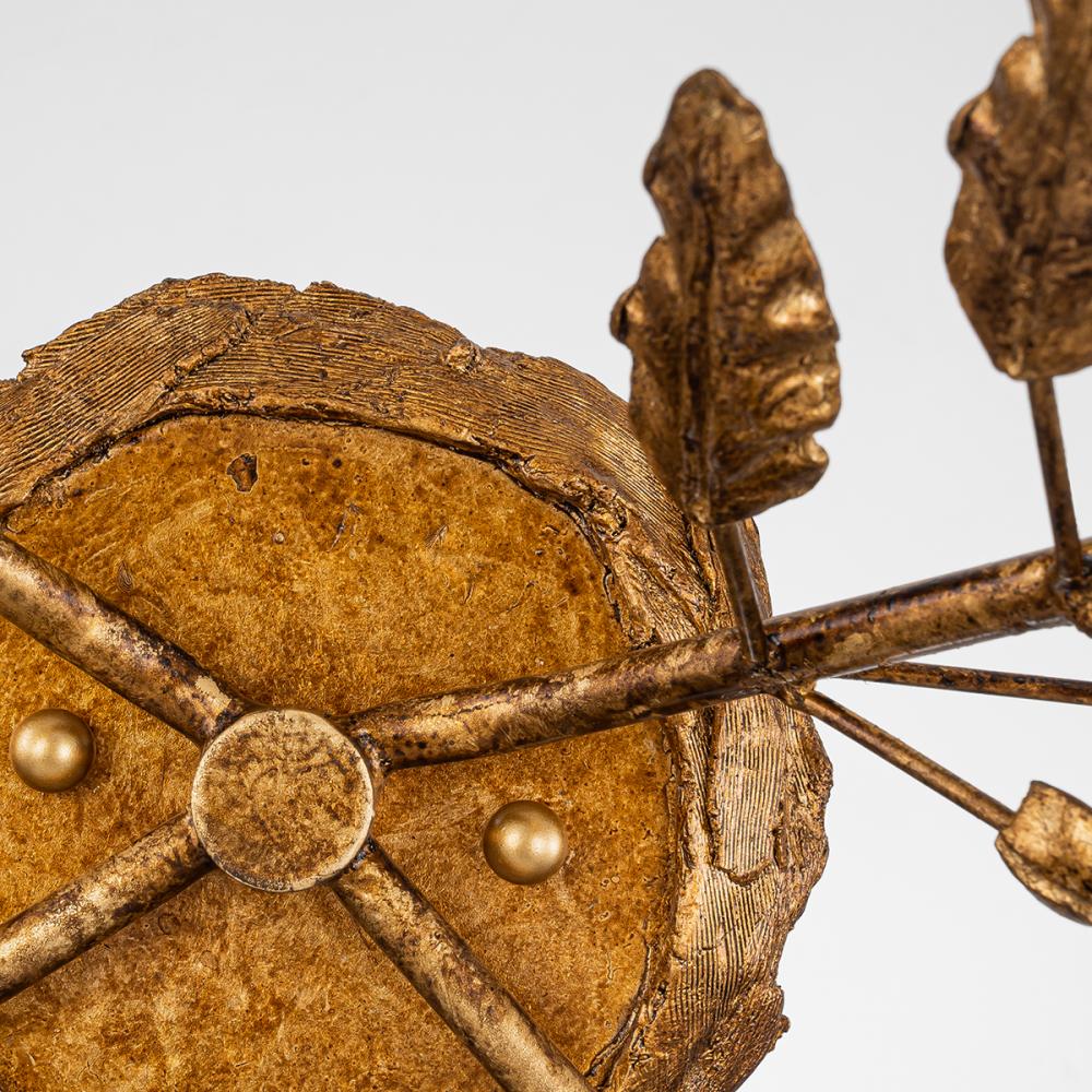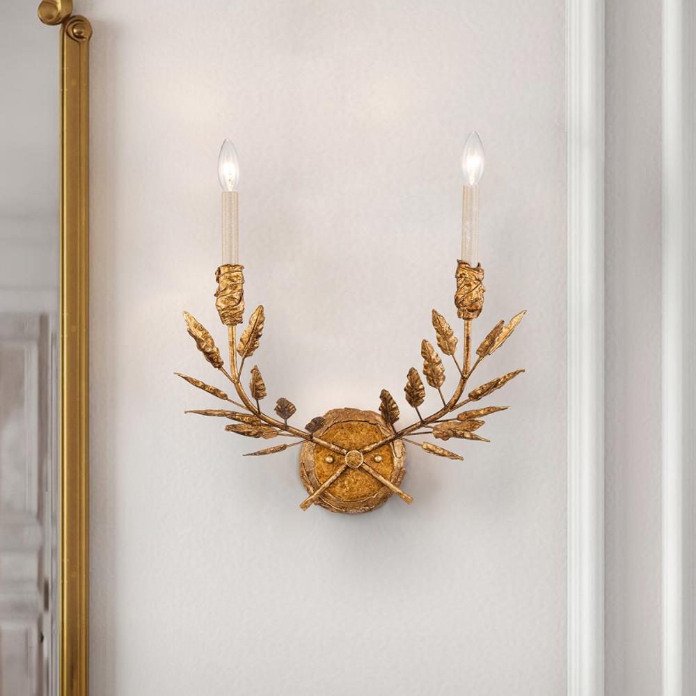 The 2 Light Palm d'Or sconce is a beautiful gold leafed compliment to it's 3 and 5 light chandelier family members; or it can be a dramatic accent all by itself.