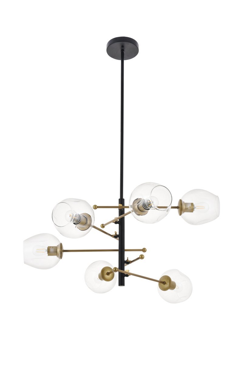 Two-toned brass and black finish 6-light pendant with lights on brass rods that can be adjusted to face a certain direction