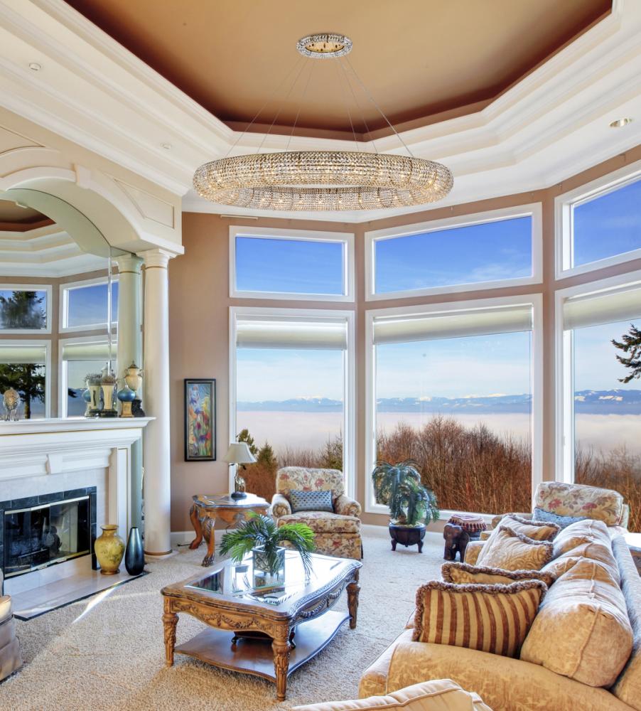 Diameter of 71 inches; minimum hanging height of 15 inches, maximum hanging height of 128 inches.