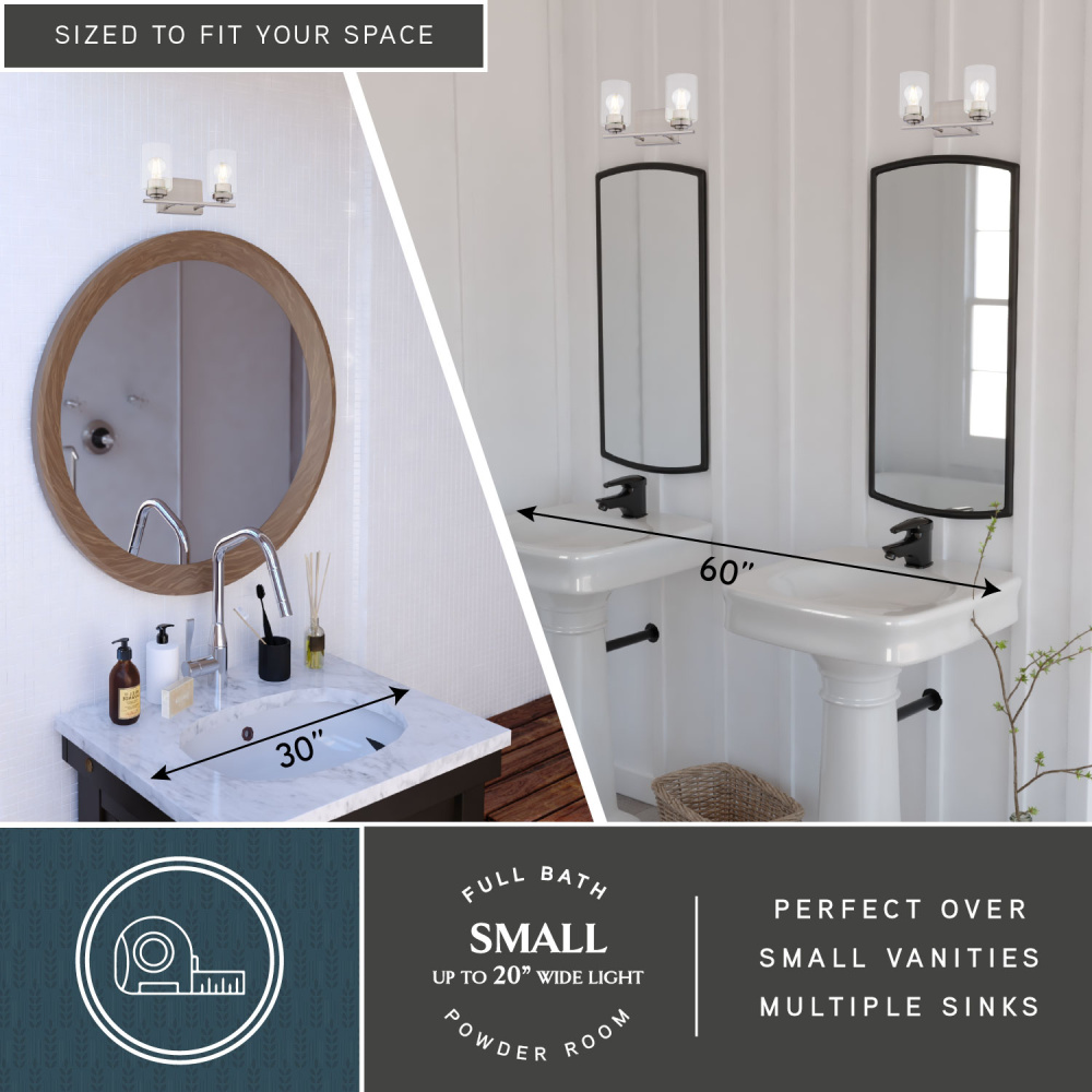 Bring a touch of minimalist sophistication to your bathroom with the Park Ridge 2-light vanity wall fixture. Its satin nickel finish and clear cylindrical glass shade create a striking focal point, casting a crisp, radiant glow perfect for any bathroom setting. Whether your style is contemporary, transitional, or even modern farmhouse, its clean lines and timeless design will complement your decor. The streamlined, straight bar design offers a contemporary edge, seamlessly blending transitional and modern aesthetics, while ensuring a quick and effortless upgrade to your space. Experience the perfect balance of style and function, transforming your bathroom into a personal sanctuary.
