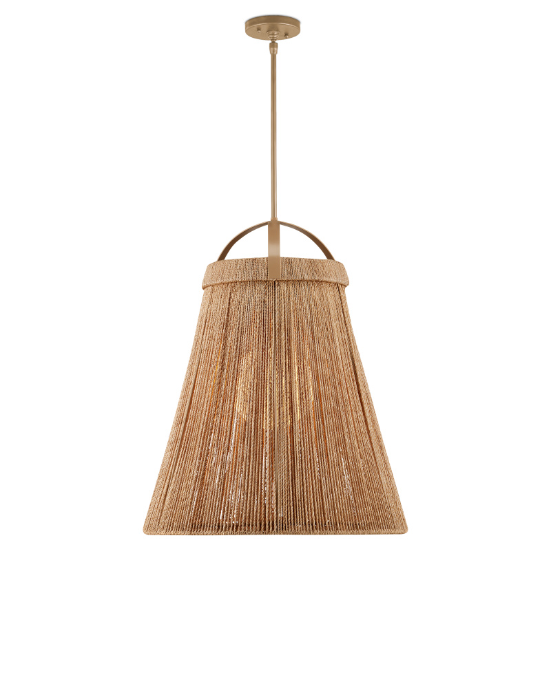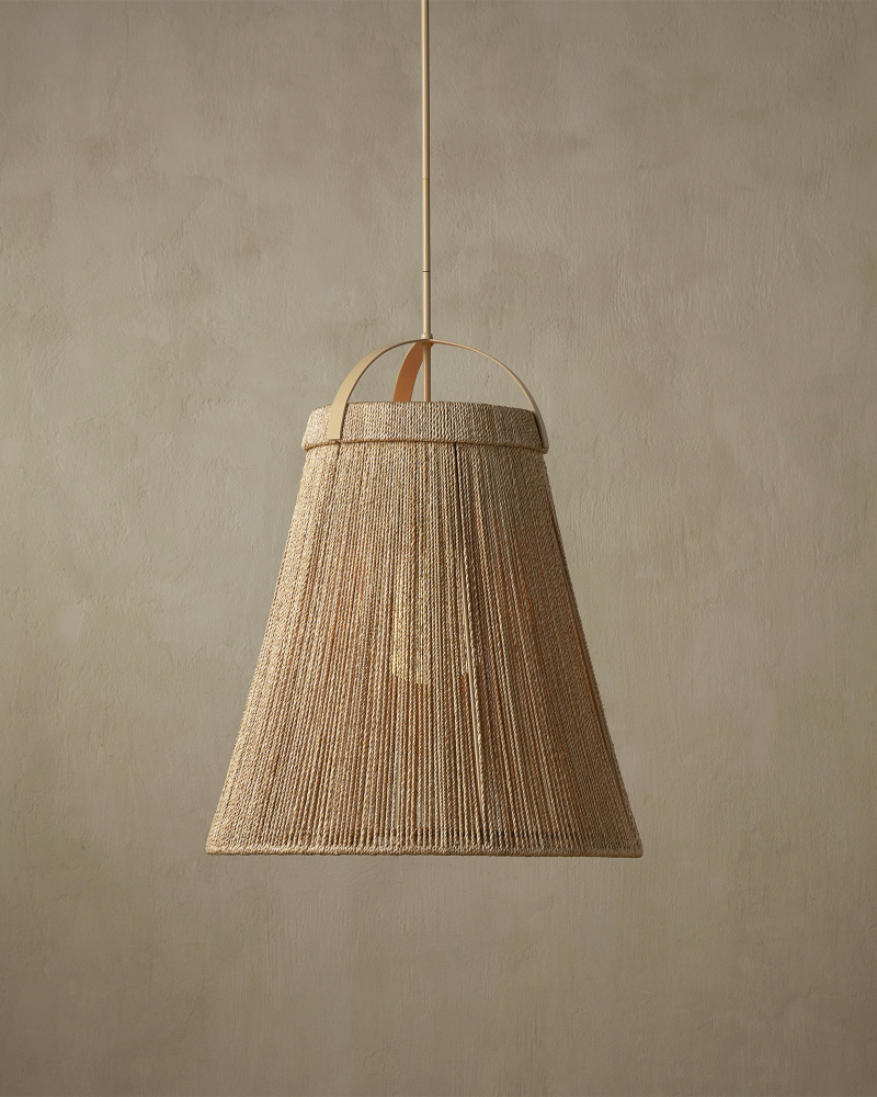 The Parnell Natural Pendant resembles a large bell, but with a delicate sophistication due to the fineness of the abaca rope. The weave is double-wrapped on both the outside and the inside of the wrought iron in a beige finish. A frosted white glass globe is the finishing touch that allows this pendant to create a lovely glow. Adjustable from 40.5" to 82.5" with use of included chain/rod kit/cable. If your space calls for a longer drop, additional chain/rods/cable is available for purchase.