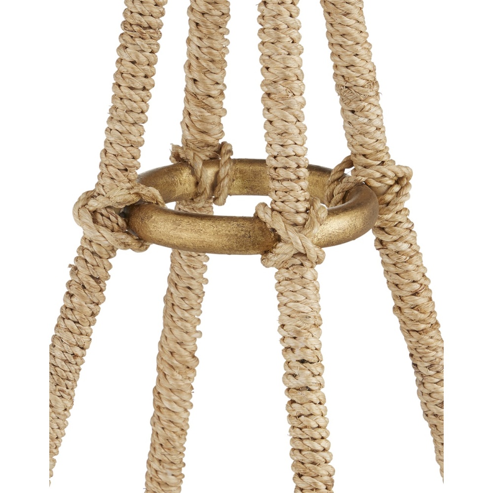 The Passageway Pendant is a cleverly designed ceiling light that combines the warmth of rope wrapping with a dorado gold finish, contrasting beautifully with the frosted glass globe to give the design a sense of heft. Four arms hold the globe in place, one of which is removable to make changing the bulbs on this tan pendant easy. This fixture is perfectly suited to nautical environments, given its seaworthy shape. Adjustable from 43.5" to 111.5" with use of included chain/rod kit/cable. If your space calls for a longer drop, additional chain/rods/cable is available for purchase.
