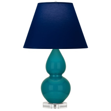 Peacock Glazed Ceramic with Lucite Base with Tangerine w/ Taupe Lining Fabric Shade - Our Double Gourd collection features a simple but gracefully curving silhouette. Available in a wide array of vibrant colors and several different base finishes.
