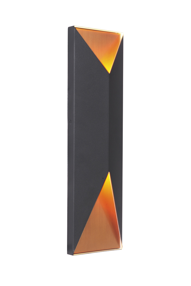 Peak 2 Light Large LED Outdoor Pocket Sconce in Textured Black/Satin Brass