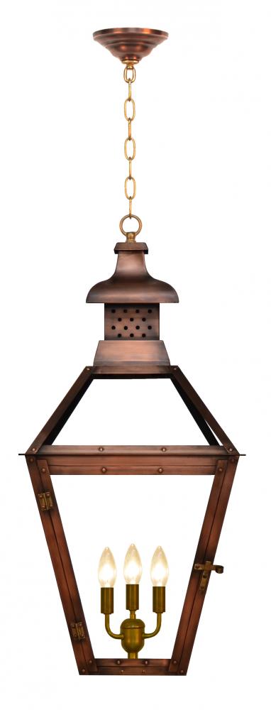 Size 29 Electric Copper Lantern, 3 candelabra base sockets, with Chain Mount
