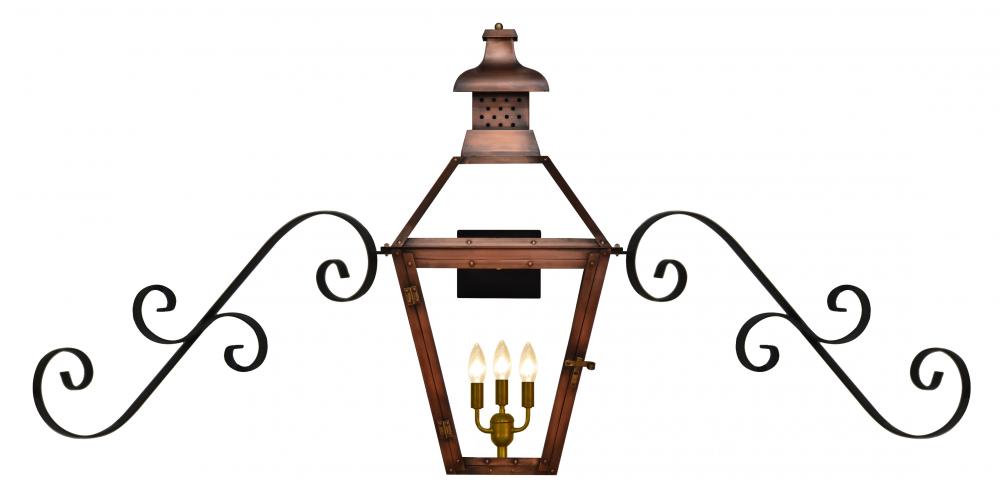 Size 29 Electric Copper Lantern, 3 candelabra base sockets, with Duel Scroll Moustache