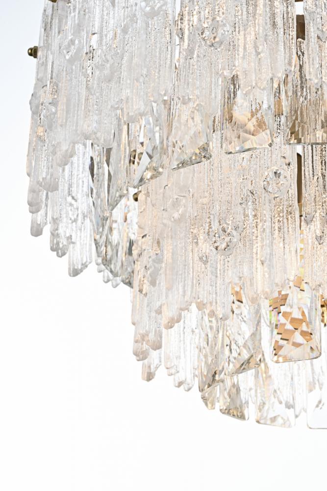 Elevate your space with this stunning 15-inch crystal chandelier, boasting four tiers and adorned with a captivating snow flower glass overlay.