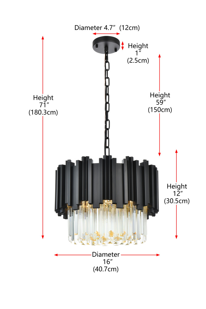 Transform your space with this stunning chandelier, a dynamic fusion of iron and staggered clear glass that exudes contemporary style and architectural artistry. The layered glass refracts light beautifully, creating a radiant display of glowing brilliance that fills the room with warmth and sophistication. The staggered arrangement of the metal and glass adds depth and dimension, making this chandelier an eye-catching centerpiece. Fully dimmable, it allows you to adjust the ambiance to suit any mood, from bright and vibrant to soft and inviting. Available in satin gold for a warm, luxurious vibe, chrome for sleek modernity, and black for bold, dramatic contrast, this fixture comes in various sizes to perfectly complement any space. Complete with a matching canopy, it’s an ideal choice for dining rooms, living rooms, or offices. Add a touch of refined geometry to your décor and bask in the brilliance of this radiant desi