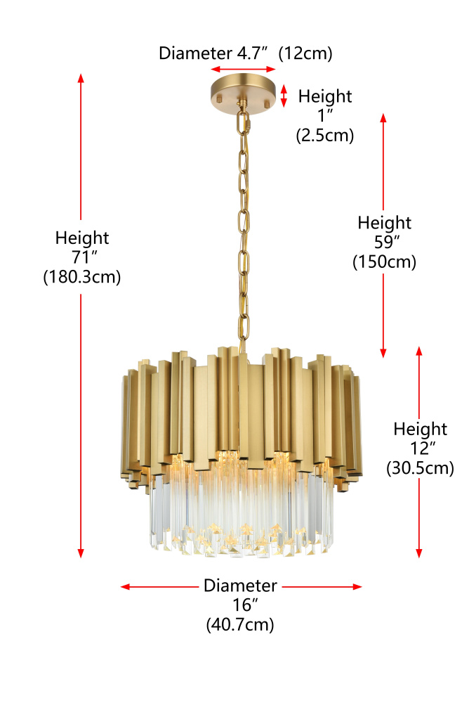 Transform your space with this stunning chandelier, a dynamic fusion of iron and staggered clear glass that exudes contemporary style and architectural artistry. The layered glass refracts light beautifully, creating a radiant display of glowing brilliance that fills the room with warmth and sophistication. The staggered arrangement of the metal and glass adds depth and dimension, making this chandelier an eye-catching centerpiece. Fully dimmable, it allows you to adjust the ambiance to suit any mood, from bright and vibrant to soft and inviting. Available in satin gold for a warm, luxurious vibe, chrome for sleek modernity, and black for bold, dramatic contrast, this fixture comes in various sizes to perfectly complement any space. Complete with a matching canopy, it’s an ideal choice for dining rooms, living rooms, or offices. Add a touch of refined geometry to your décor and bask in the brilliance of this radiant desi