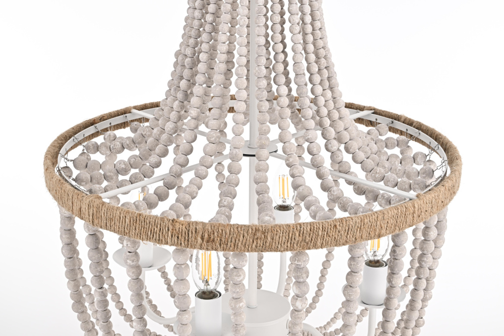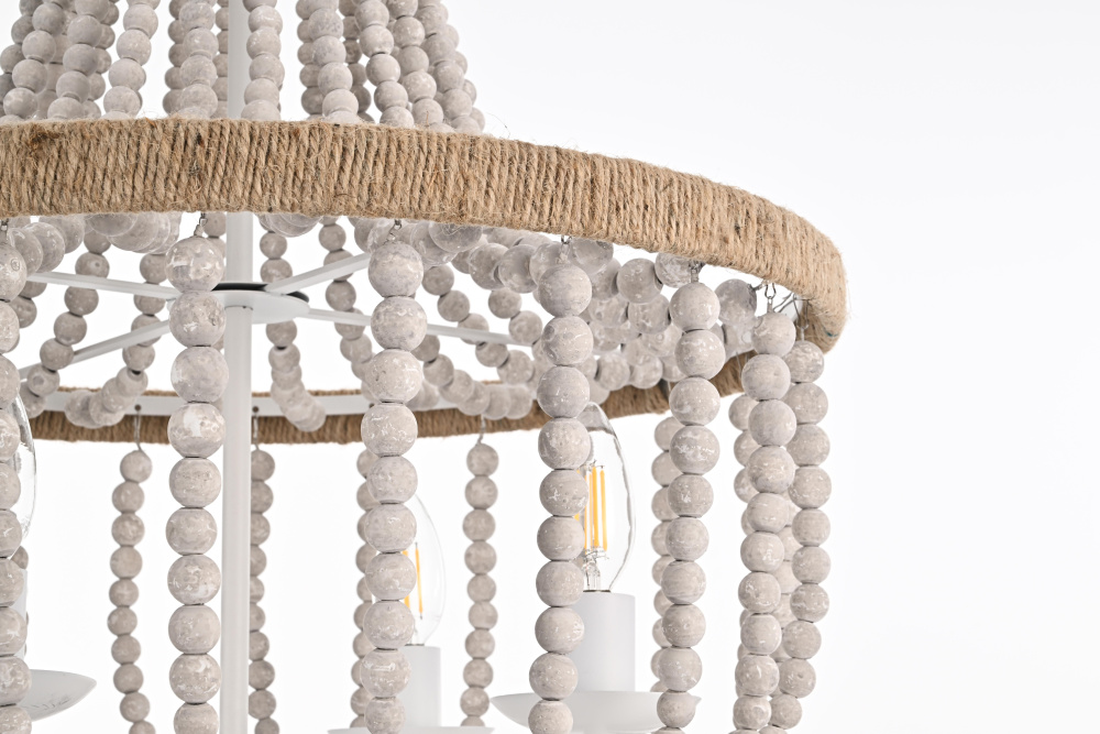 Timeless elegance meets coastal charm as weathered white wooden beads create a serene, sophisticated presence perfect for refined spaces.