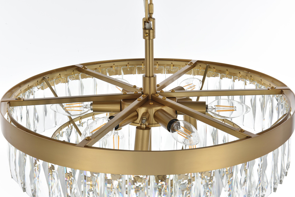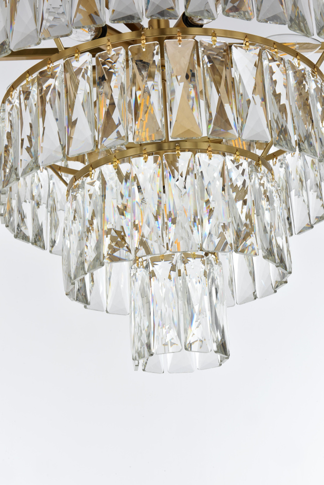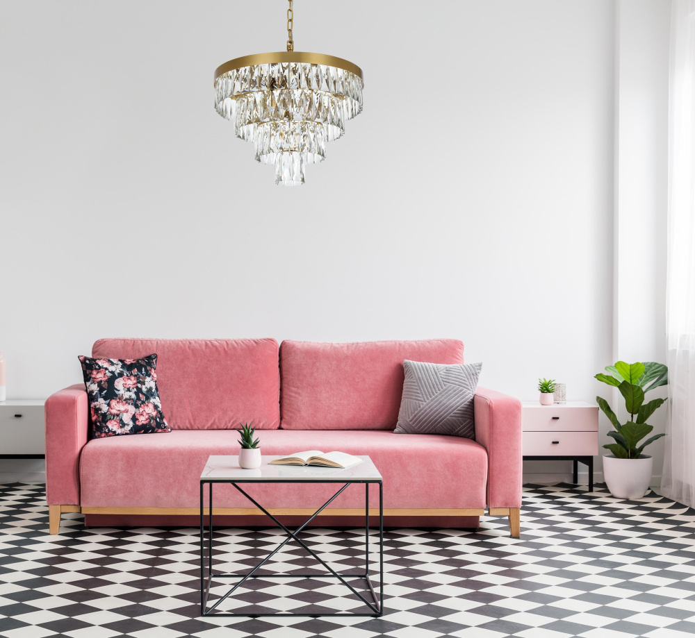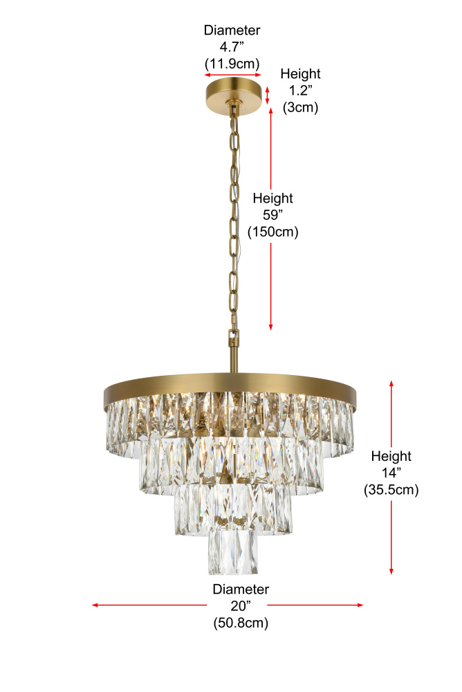 Transform your space with this extraordinary pendant that reimagines classical crystal design for contemporary interiors. The masterfully engineered silhouette features six graduating tiers that create a spectacular inverted pyramid, reminiscent of a frozen cascade captured in mid-descent. Each precisely cut rectangular crystal is strategically positioned to maximize light play, creating mesmerizing displays of fractured light throughout your space. The substantial scale makes this fixture an ideal centerpiece for grand entryways, sophisticated dining rooms, or executive offices. The thoughtful construction incorporates 13 light sources distributed throughout the tiers, ensuring both spectacular illumination and enchanting crystal animation. The robust iron framework provides a secure foundation while maintaining visual lightness, allowing the crystals to appear as if floating in space. Available in reflective chrome, sophisticated black, or warm satin gold, this pendant makes an unforgettable statement while maintaining refined restraint. The cascading arrangement creates a sense of movement and flow, while the geometric precision of each crystal adds contemporary edge to the classical form. This is more than a light fixture – it's an architectural feature that transforms your space through its commanding presence and spectacular light performanc