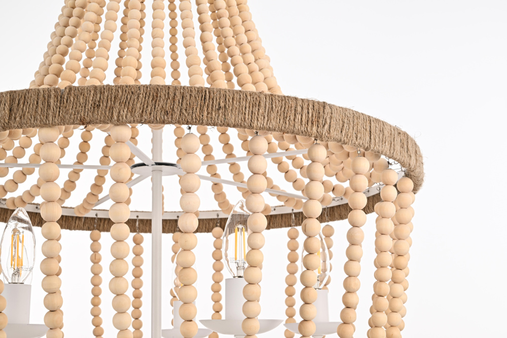 Raw beauty emerges through natural wooden beads and rustic rope detail, bringing organic warmth and authentic character to any room.