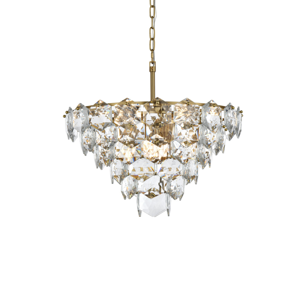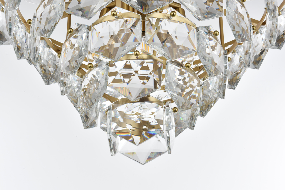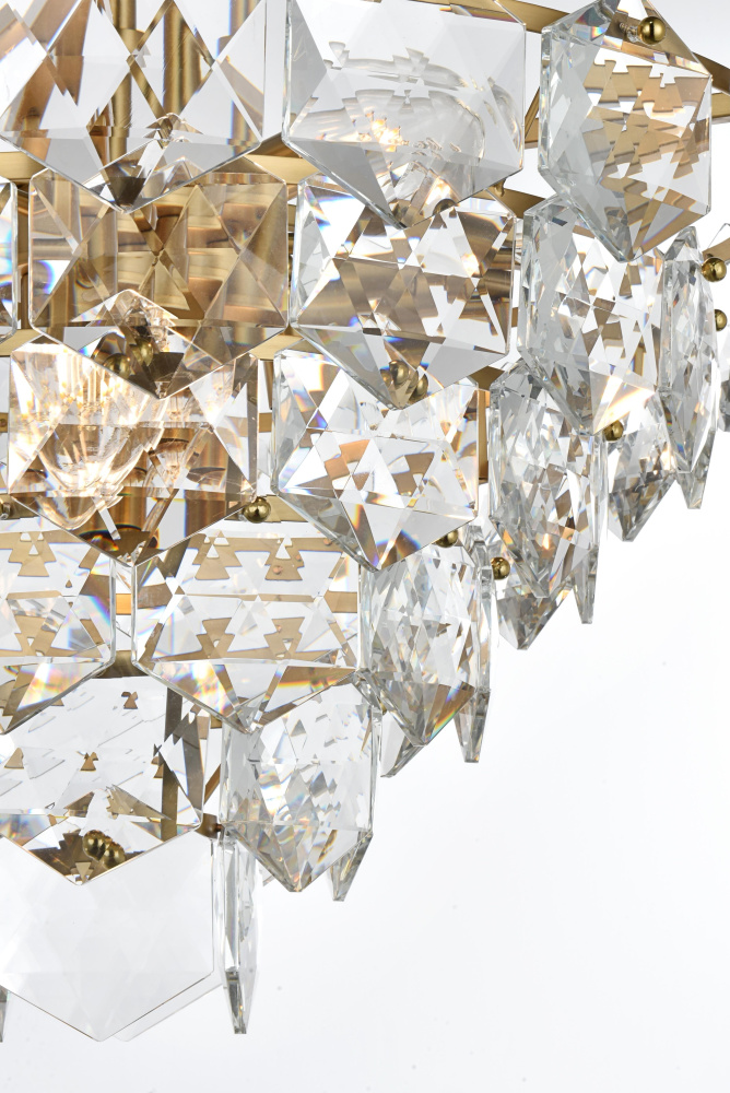 Features a stunning multi-tier arrangement of faceted crystals cascading down, creating a layered, dynamic visual effect that draws the eye and adds depth to any room.