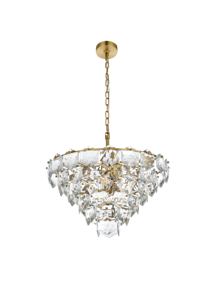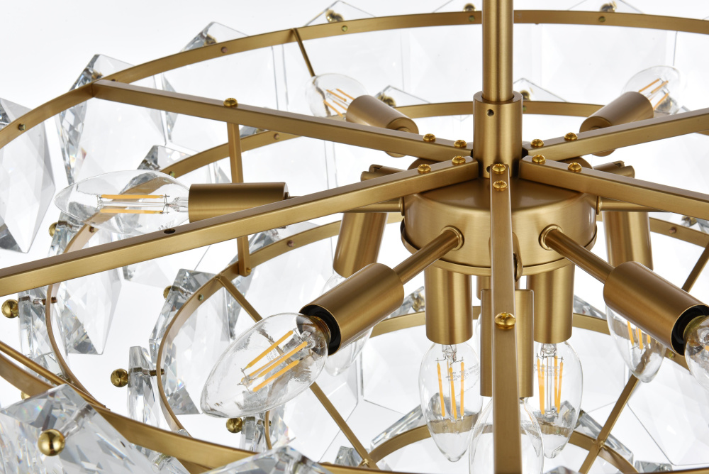 Transform your space with this cascading multi-tier pendant light that combines striking design with meticulous craftsmanship. Crafted from a sturdy iron frame and adorned with six-sided faceted crystals, this lighting piece exudes charm through its ability to diffuse light into a soft, radiant glow. With finishes available in both sleek chrome for a contemporary feel and satin gold for a warmer, refined touch, it complements a range of decor styles. The adjustable height, from 23 inches to 83 inches with the included 59-inch chain, ensures it fits seamlessly in any setting. Equipped with eleven E12 sockets and dimmable functionality, you can customize the lighting to suit your mood or occasion. Its matching canopy and chain finish complete the cohesive design, making it perfect for kitchens, dining rooms, living rooms, or offices. A statement piece that transforms your space into a work of art, this pendant is the perfect blend of style and functionality.