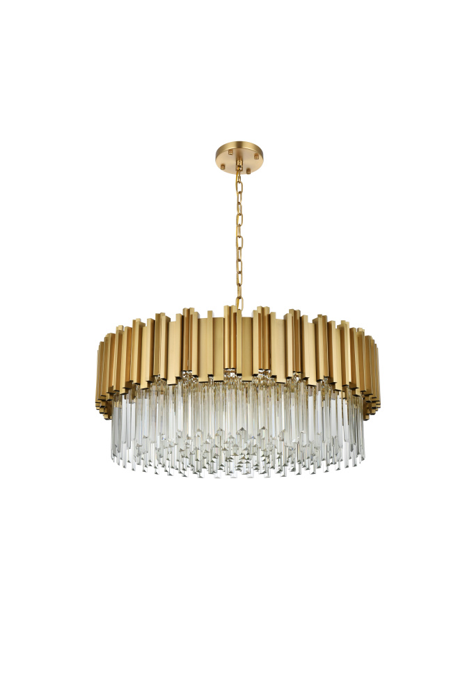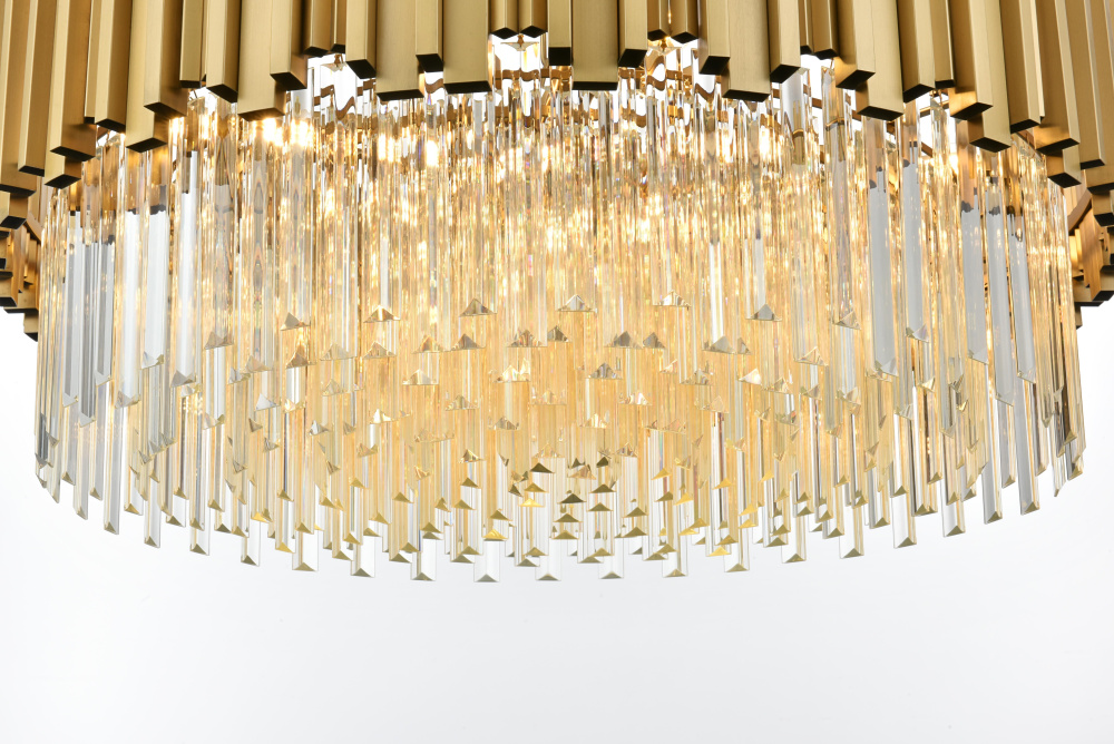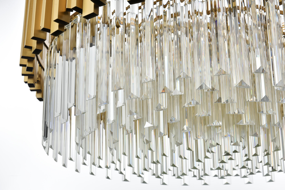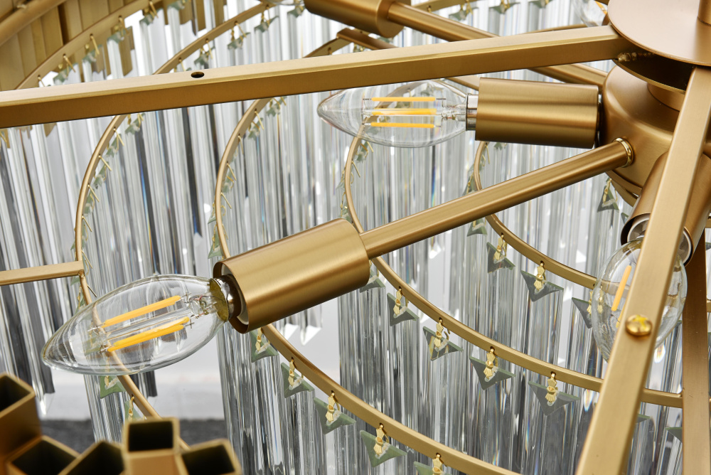 Transform your space with this stunning chandelier, a dynamic fusion of iron and staggered clear glass that exudes contemporary style and architectural artistry. The layered glass refracts light beautifully, creating a radiant display of glowing brilliance that fills the room with warmth and sophistication. The staggered arrangement of the metal and glass adds depth and dimension, making this chandelier an eye-catching centerpiece. Fully dimmable, it allows you to adjust the ambiance to suit any mood, from bright and vibrant to soft and inviting. Available in satin gold for a warm, luxurious vibe, chrome for sleek modernity, and black for bold, dramatic contrast, this fixture comes in various sizes to perfectly complement any space. Complete with a matching canopy, it’s an ideal choice for dining rooms, living rooms, or offices. Add a touch of refined geometry to your décor and bask in the brilliance of this radiant desi