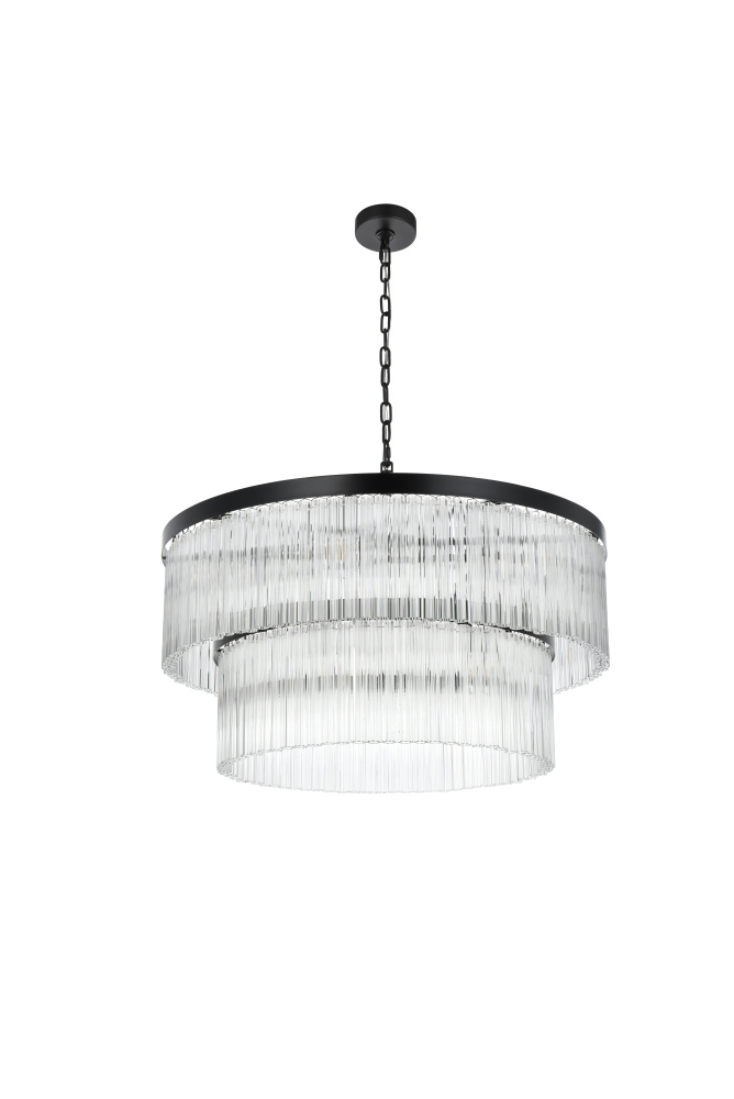Turn your space into a glowing masterpiece with this striking pendant light, crafted from durable iron and shimmering clear ribbed glass. The cascading layers create a stunning interplay of light and shadow, refracting illumination into a radiant display that transforms your space into an illuminated work of art. Available in chrome for a sleek, contemporary aesthetic, black for bold contrast, and satin gold for an inviting warmth, this pendant light is as versatile as it is beautiful. Whether you choose a single tier for minimalist charm, two tiers for balanced depth, three tiers for bold presence, or four tiers for show-stopping grandeur, there’s an option for every setting. Featuring both round and rectangular frame designs, this fixture adapts to any space with ease. Complete with a matching canopy and chain, and fully dimmable for customized lighting, this pendant pairs perfectly with the coordinating single-tier flush mount and wall sconce collection, ensuring a cohesive, radiant design throughout youhome or office. Please note: light bulbs are sold separately.