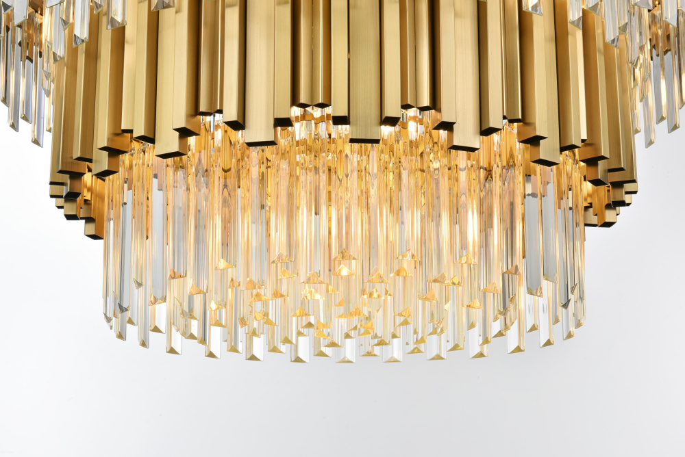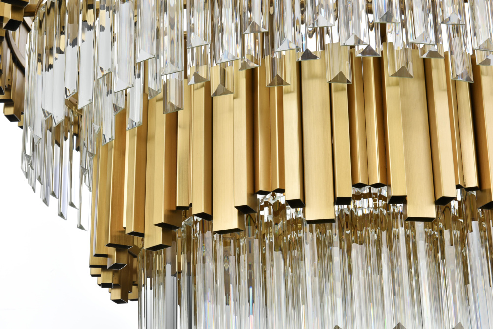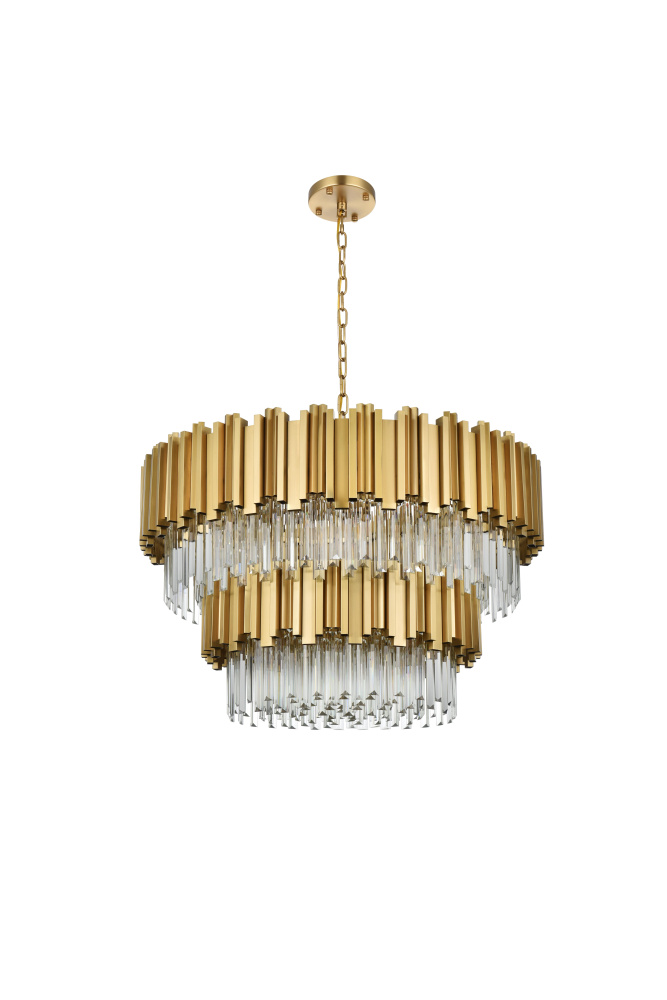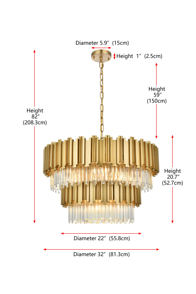 Transform your space with this stunning chandelier, a dynamic fusion of iron and staggered clear glass that exudes contemporary style and architectural artistry. The layered glass refracts light beautifully, creating a radiant display of glowing brilliance that fills the room with warmth and sophistication. The staggered arrangement of the metal and glass adds depth and dimension, making this chandelier an eye-catching centerpiece. Fully dimmable, it allows you to adjust the ambiance to suit any mood, from bright and vibrant to soft and inviting. Available in satin gold for a warm, luxurious vibe, chrome for sleek modernity, and black for bold, dramatic contrast, this fixture comes in various sizes to perfectly complement any space. Complete with a matching canopy, it’s an ideal choice for dining rooms, living rooms, or offices. Add a touch of refined geometry to your décor and bask in the brilliance of this radiant desi