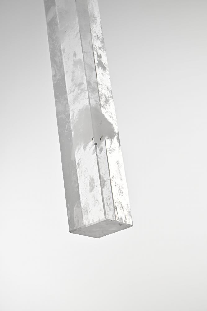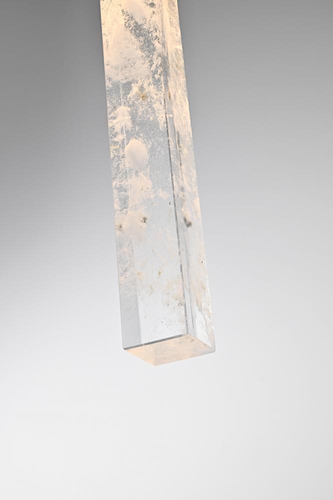 Immerse yourself in the captivating allure of our natural crystal pendant, a stunning piece that embodies the true artistry of nature. Each crystal tells a unique story, with ethereal white clouds and mysterious black specks forming a mesmerizing dance of elements within its clear surface. These wispy inclusions create a serene, dreamlike landscape that evokes both wonder and tranquility. Meticulously crafted over millennia, no two crystals are alike, making each pendant a one-of-a-kind masterpiece. Whether enhancing a modern minimalist space or adding elegance to a classic interior, this versatile lighting piece complements any style with its natural beauty. Suspended by an adjustable 144-inch cord and illuminating with a warm 3000K light at 480 lumens, it brings both sophistication and a calming ambiance to any room.