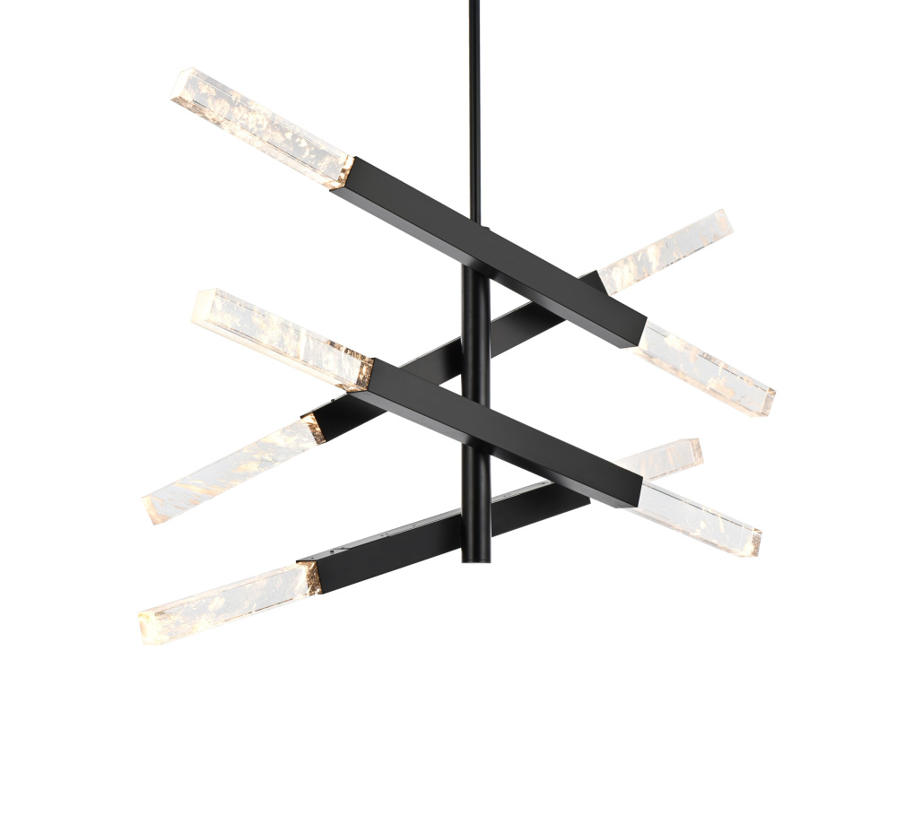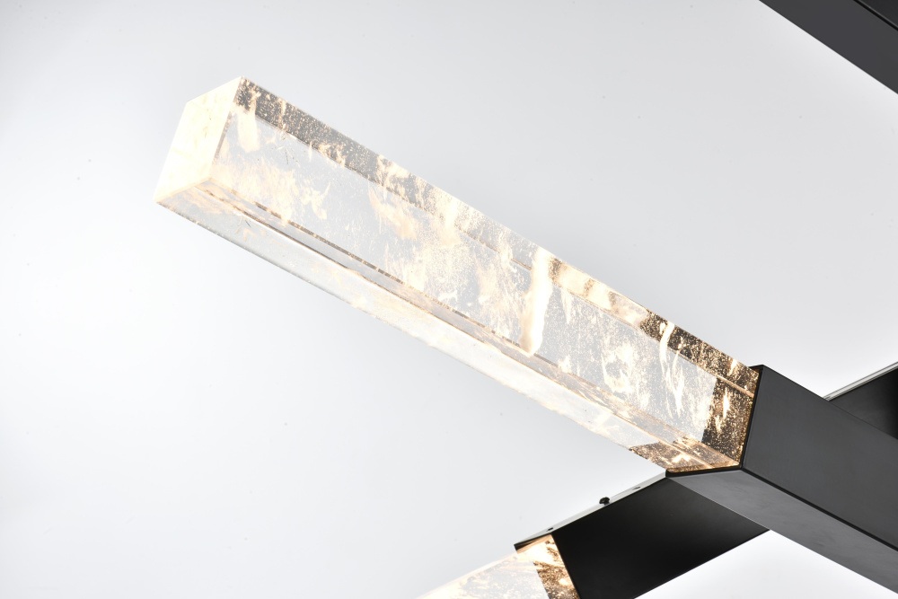 The black finish provides a striking contrast to the glowing crystals, adding a bold, edgy vibe to modern interiors.