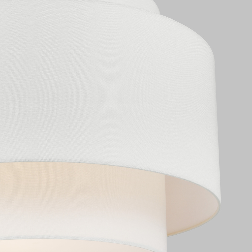 Inspired by kate spade new york whimsical geometry and playful lines, Sawyer has a striking silhouette with graphically tapered shades. A wide double-tiered pendant shade with graphically taped shades. Great over a dining table or nook, or in multiples over an island
