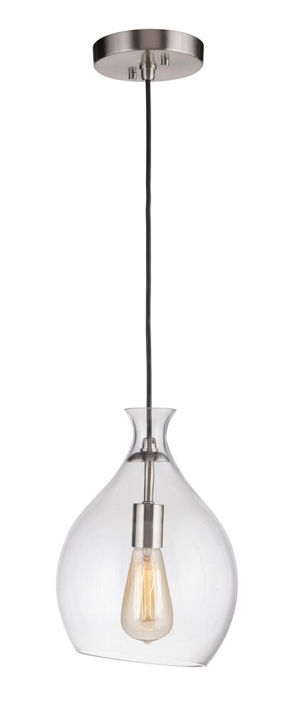 The Zuni pendant collection inspires with its abstract clear glass globe available in two sizes, striking brushed nickel finish and adjustable cord for easy installation.
