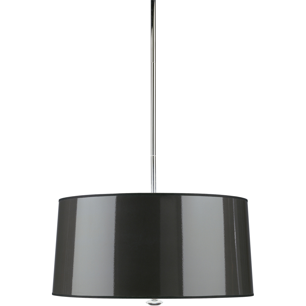The Penelope collection draws the eye by combining polished metal, vibrant color choices, and graceful tapers. These pieces are sure to add both sophistication and visual appeal to your space. - Polished Nickel Penelope Pendant with Black Ceramik Parchment Shade with Silver Mylar Lining