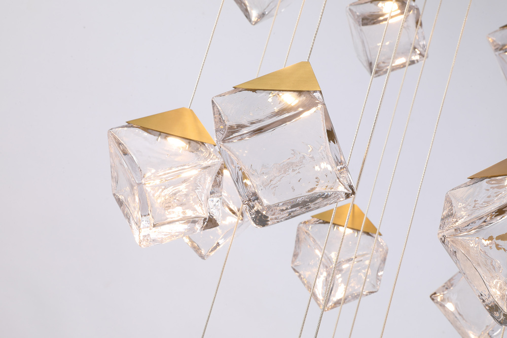 The Pensey Collection by Kanova & Co. exudes modern sophistication with a dazzling interplay of light and geometry. Featuring suspended crystal cube pendants, this collection is available in Brushed Gold and Brushed Nickel finishes, offering a luxurious yet contemporary aesthetic. The cascading chandeliers create a dramatic focal point, while the single pendant adds a refined touch to any space. Perfect for grand staircases, dining areas, or modern entryways, the Pensey Collection transforms interiors with elegance and brilliance.