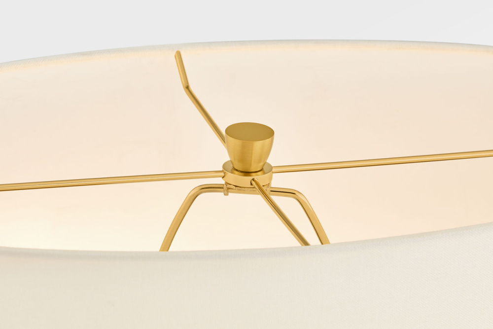 Pente 27" Table Lamp by Hable brings bold, sculptural presence to interior surfaces With its rounded ceramic form and dual facades that catch and reflect light. A natural linen shade softens the glow, creating a warm interplay between texture and illumination. Rooted in Hable’s history of hand-shaped ceramics, the lamp offers a refined balance of simplicity and depth. Ideal for bedrooms, living rooms, dining rooms, or foyer consoles, the Pente 27" Table Lamp embodies quiet luxury through expressive form and material.
