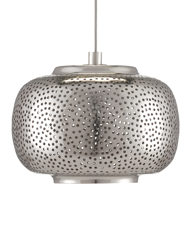 Our Pepper 7-Light Multi-Drop Pendant has pierced metal shades in a mix of painted silver and nickel finishes. The textural metal orbs are on point for modern farmhouse and industrial chic interiors. The canopy of this piece is luminous in a painted silver finish. This fixture is among Currey & Company's multi-drop pendant collection, which includes multiple configurations.
