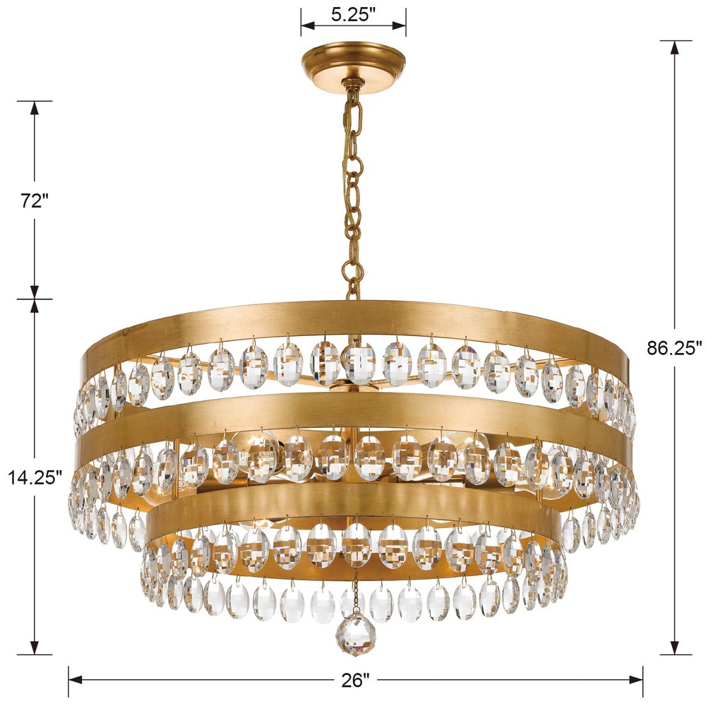 Layers of crystal jewels are arranged on a simple, clean frame creating optimal sparkle. Hand painted shimmering ribbons of metal, the Perla balances individual faceted crystal, totaling 64 precise cuts, allowing for maximum light refraction. The result is a vibrant, flowing fixture that balances traditional values with a contemporary mindset. A perfect compliment to any space, this chandelier is sure to amaze.