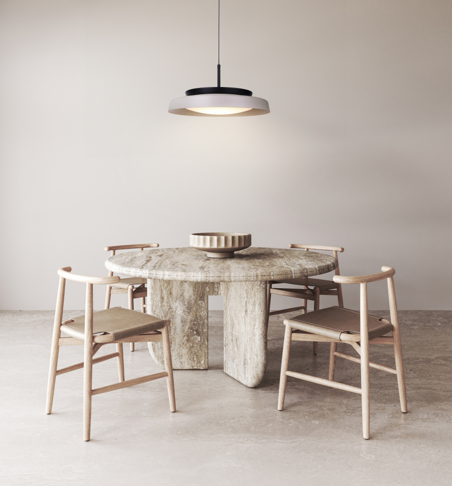 The PETRA pendant combines modern elegance with wellness-inspired design. Its matte black frame pairs beautifully with a soft stone-coloured shade, creating a calming palette that feels both grounding and subtly bold. Futuristic shapes and clean lines give it a sculptural presence, while the stone-inspired finish connects to natural elements that bring calm and balance into the home. An acrylic diffuser softens the light, casting a glow that feels restorative yet practical. Powered by a 24W integrated LED, PETRA provides 1200 lumens of energy-efficient illumination with a 3CCT switch to adjust the tone: from 3000K to a crisp 5000K. With an adjustable height of 8.62 to 68.62 inches, this pendant adapts to low or high ceilings, making it a seamlessly modern statement piece for dining, living, or gathering areas.
