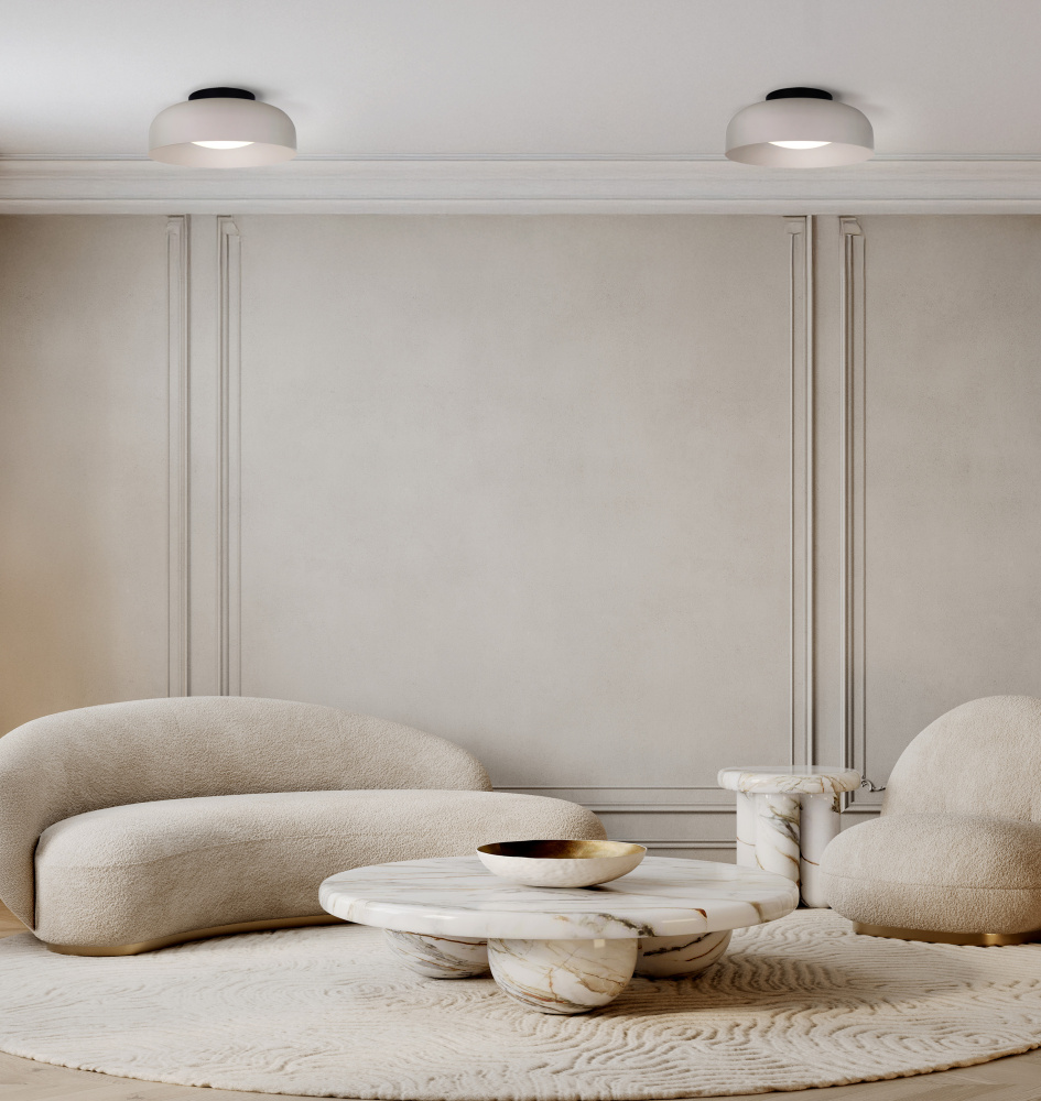 The PETRA flush mount blends minimalist design with wellness-inspired calm, pairing matte black with soft stone tones for a look that feels both modern and grounding. Its sculptural form recalls the balance by embracing simplicity, proportion, and quiet elegance. An acrylic diffuser softens the light, casting an inviting glow that echoes spa-like serenity and restorative retreat design. Powered by a 24W integrated LED, PETRA delivers 1200 lumens with a 3CCT switch that shifts between warm 3000K, balanced 4000K, and crisp 5000K illumination. Dimmable functionality allows smooth transitions from soft ambience to bright clarity, enhancing mental clarity and mood. Measuring 13.75 inches wide, this ceiling light carries a refined presence that suits bedrooms, entryways, or living spaces. PETRA is luxury made simple; minimalist, calming, and designed to bring balance into everyday living.