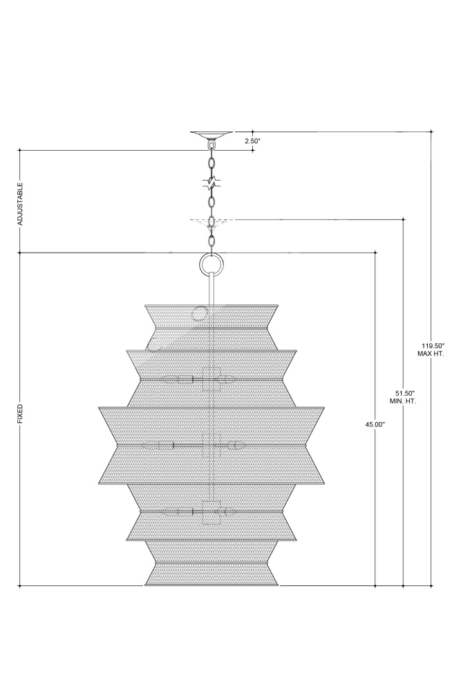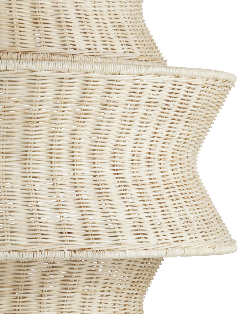 The Phebe Large Chandelier is a dynamic design that highlights the talents of our weavers and the skillful use of natural materials. This five-tier white chandelier achieves a cohesive look with circular wire frames wrapped in the same material, with the entire fixture bleached for a uniform finish. The vanilla finish of the hardware enhances the light and airy feel of the design. Inspired by a natural material story, the Phebe exudes effortless elegance. Adjustable from 51.5" to 119.5" with use of included chain/rod kit/cable. If your space calls for a longer drop, additional chain/rods/cable is available for purchase.