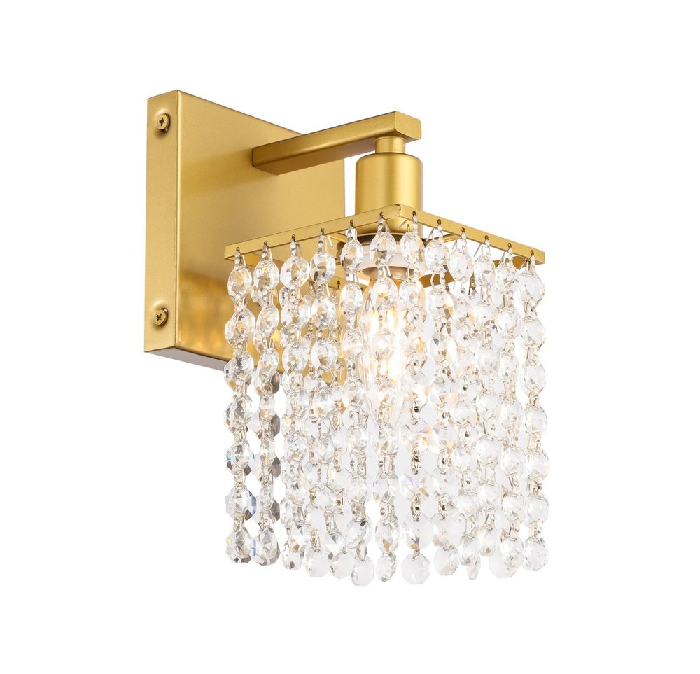 The Phineas Collection of lights always exude elegance and sparkling beauty--and why wouldn't it, with its beautiful curtain of clear crystal strands that shimmer with each passing second as light passes through? Available in a stunning brass or chrome finish, not only will your home be illuminated, your guests will be charmed and in awe of the dancing crystal lights, and you will be pleased with how this wall lamp can elevate any room into a luxurious and glamourous world (light bulbs not included).