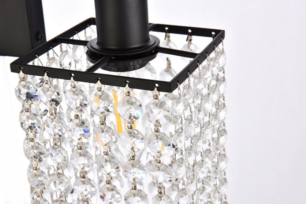 The Phineas Collection of lights always exude elegance and sparkling beauty--and why wouldn't it, with its beautiful curtain of clear crystal strands that shimmer with each passing second as light passes through? Available in a stunning black finish, not only will your home be illuminated, your guests will be charmed and in awe of the dancing crystal lights, and you will be pleased with how this wall lamp can elevate any room into a luxurious and glamourous world (light bulbs not included).
