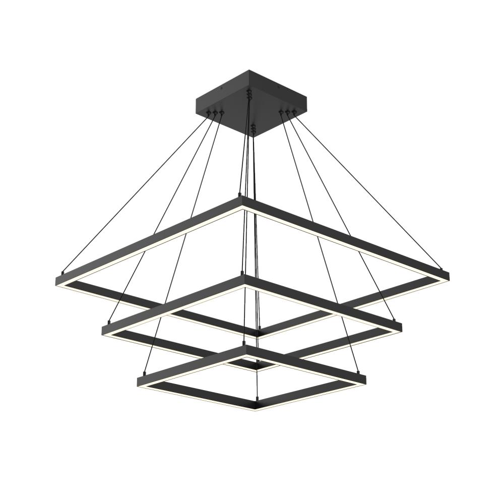 A suspended rectilinear frame emits soft luminance downward from the continuous perimeter opal diffuser. Veiled within the aluminum extrusion is a secondary set of LED lights sending ambient illumination up toward the ceiling. Utilizing a minimal orthogonal outline the PIAZZA series creates an airy effect with the center of the fixture transparent and open. Available as essential singular pendant or dramatic multi-pendant configurations.