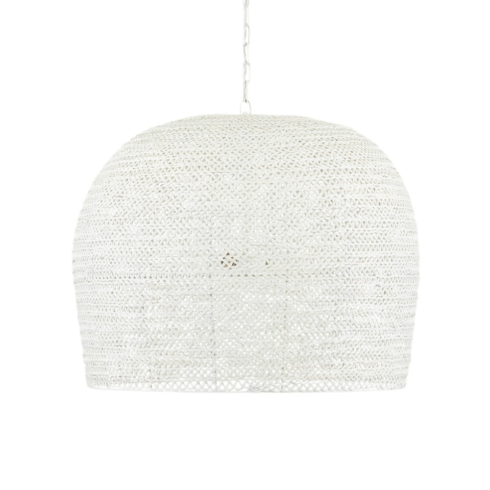The Piero White Large Chandelier may appear to be woven from a natural plant material, but it is made of iron in a white finish to make it one of our offerings that illustrates the skills that our craftspeople bring to their work. When the white chandelier is illuminated, textural patterns will enliven surrounding surfaces. Adjustable from 29" to 99" with use of included chain/rod kit/cable. If your space calls for a longer drop, additional chain/rods/cable is available for purchase.