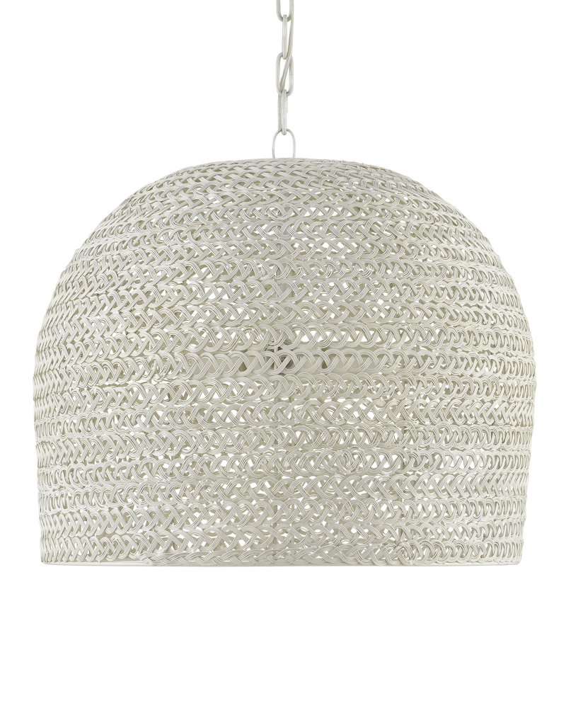 The Piero White Medium Chandelier may appear to be woven from a natural plant material, but it is made of iron in a white finish to make it one of our offerings that illustrates the skills our craftspeople bring to their work. When the white chandelier is illuminated, textural patterns will enliven surrounding surfaces. Adjustable from 24.25" to 94" with use of included chain/rod kit/cable. If your space calls for a longer drop, additional chain/rods/cable is available for purchase.
