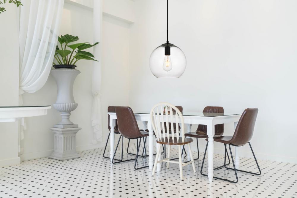 The Placido collection lives up to its name by bringing some peace to your day. The clear glass shades, reminiscent of a clear, placid lake, are contrasted with black hardware. Select from the ball, lozenge, cylinder, and crown shade shapes to add a glowing accent to your kitchen, bar, entryway, office space, or bedroom. The transitional-style pendants are illuminated with one incandescent or LED lamp (not included), and the height is adjustable. These soothing lights may encourage relaxation, creative daydreaming, or even a tranquil siesta.