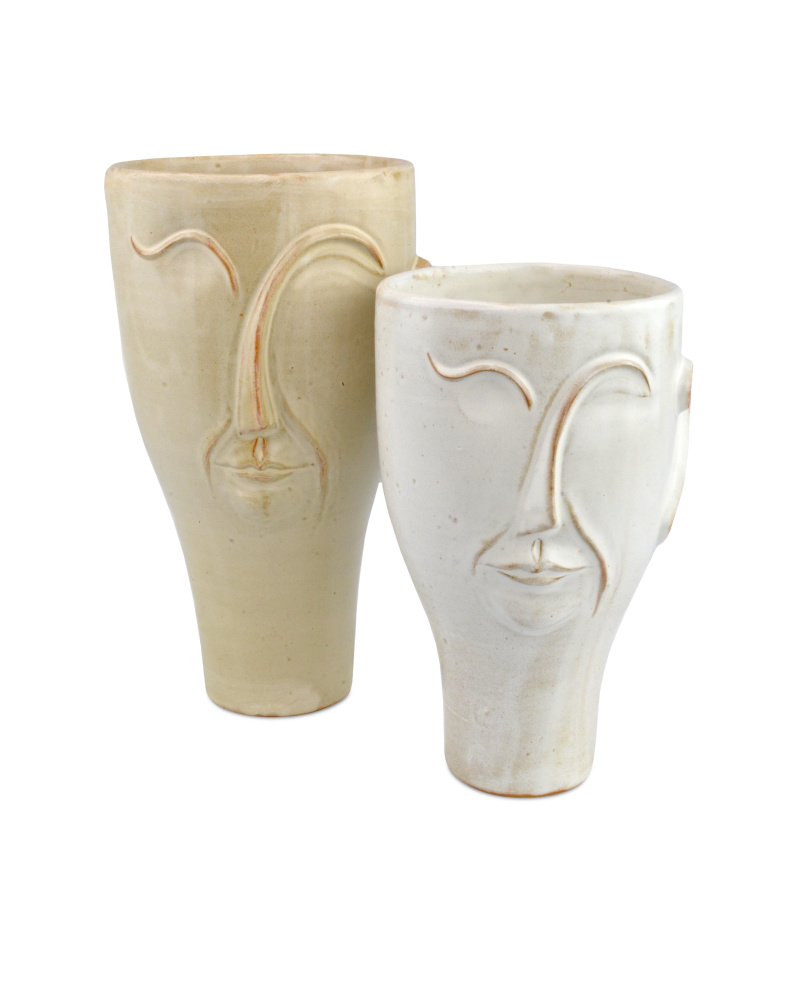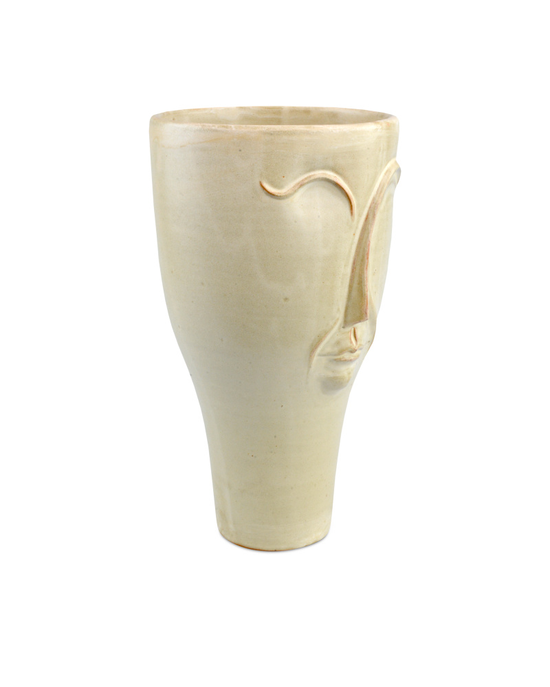The Poet Large Vase is a whimsical hand-thrown design inspired by drawings artists like Jean Cocteau and Pablo Picasso would sketch when an interesting profile caught their eye in the famed cafes of Paris. Made of terracotta by the women at the border of Burma and Thailand, who create so many unique accessories and lamp bodies, the milky white vase is a poetic design.