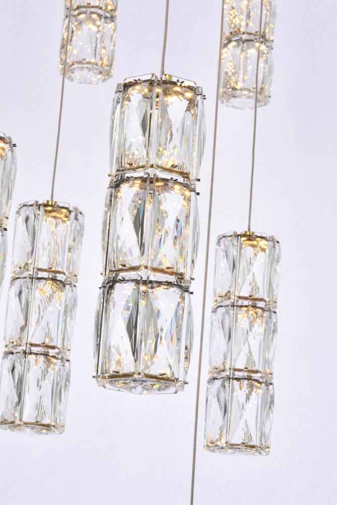 Introducing our exquisite modern LED crystal faceted chandelier, a true epitome of elegance and convenience. Crafted with precision using stainless steel metal, this chandelier boasts a mesmerizing faceted design that radiates a warm temperature of 3000K, enveloping your space in a cozy and inviting glow. with adjustable height functionality and compatibility with sloped ceilings, installation is a breeze, requiring no assembly. The combination of durable stainless steel and energy-efficient LED technology ensures longevity and minimal maintenance. Illuminate your home with this stunning chandelier, effortlessly transforming any room into a stylish haven of warmth and sophistication.