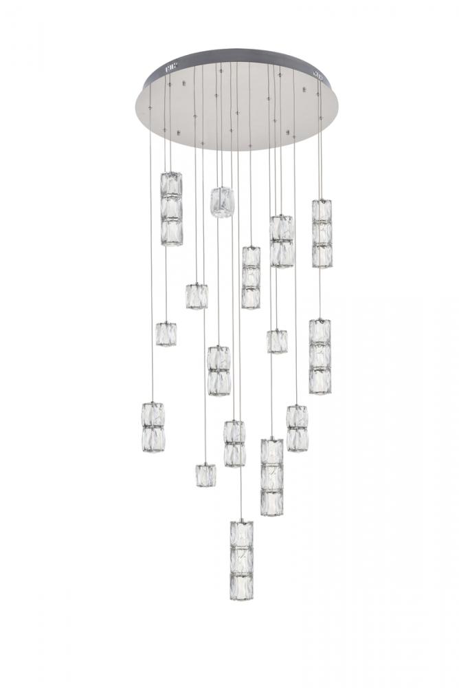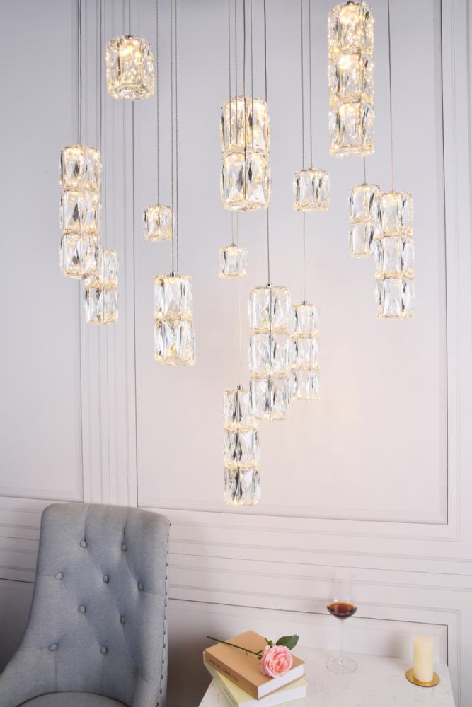 The Polaris collection is the epitome of "cool" in lighting, because each of the fixtures has rectangular, elegant-cut crystals that look like ice cubes, gracefully suspended from a stainless-steel base with a bright chrome finish. Designed for rooms with higher ceilings, these fixtures are definitely stylistic attention-getters.