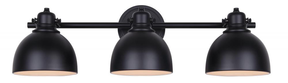 Canarm IVL622A03BK - Polo 25 in. 3 Light Matte Black Vanity with Black Metal Shade