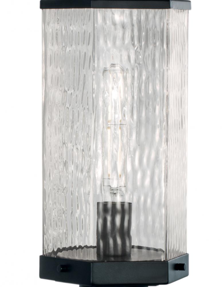Unique outdoor fixture with six sided, wavy glass, with matte black finish