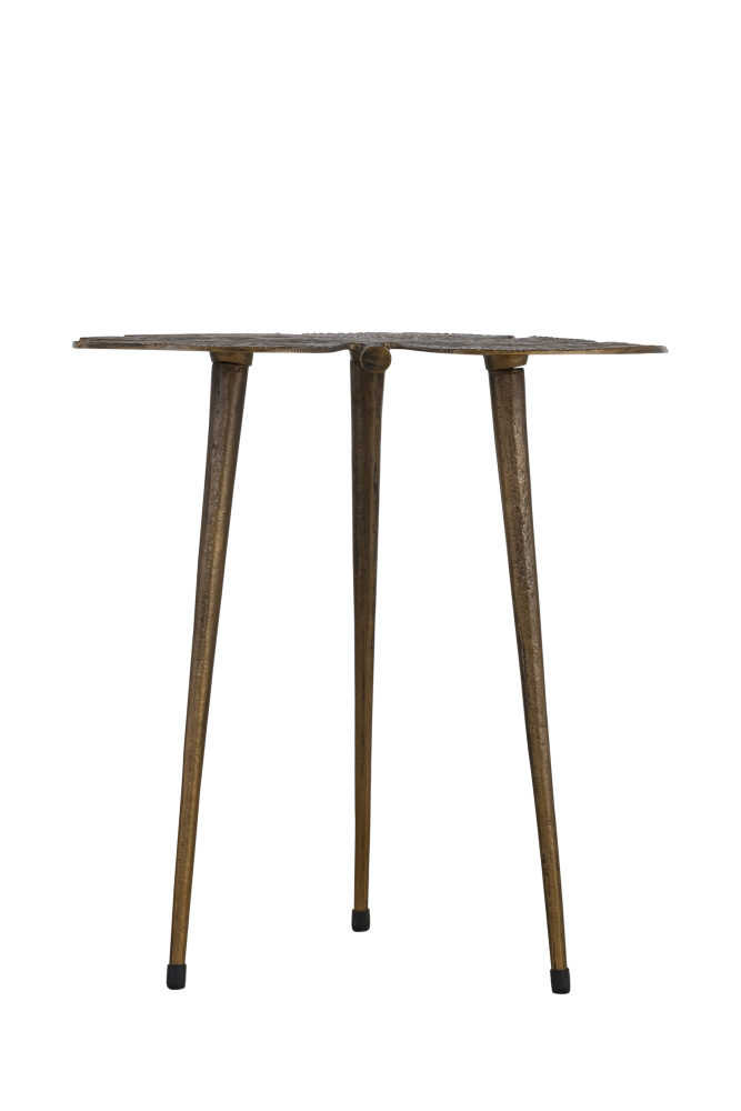 The Pomeroy side table brings a striking blend of functional artistry to your space. Crafted from sturdy aluminum, this table features a beautifully sculpted tropical leaf design that doubles as a statement piece and a functional surface. The 16.15-inch tabletop offers ample space for drinks, books, or decor, making it perfect for your living room, bedroom, or entryway. Its unique blend of contemporary rustic and boho style adds a touch of nature-inspired elegance to any room. Ideal for those who appreciate both form and function, the Pomeroy side table seamlessly complements a variety of interior styles.
