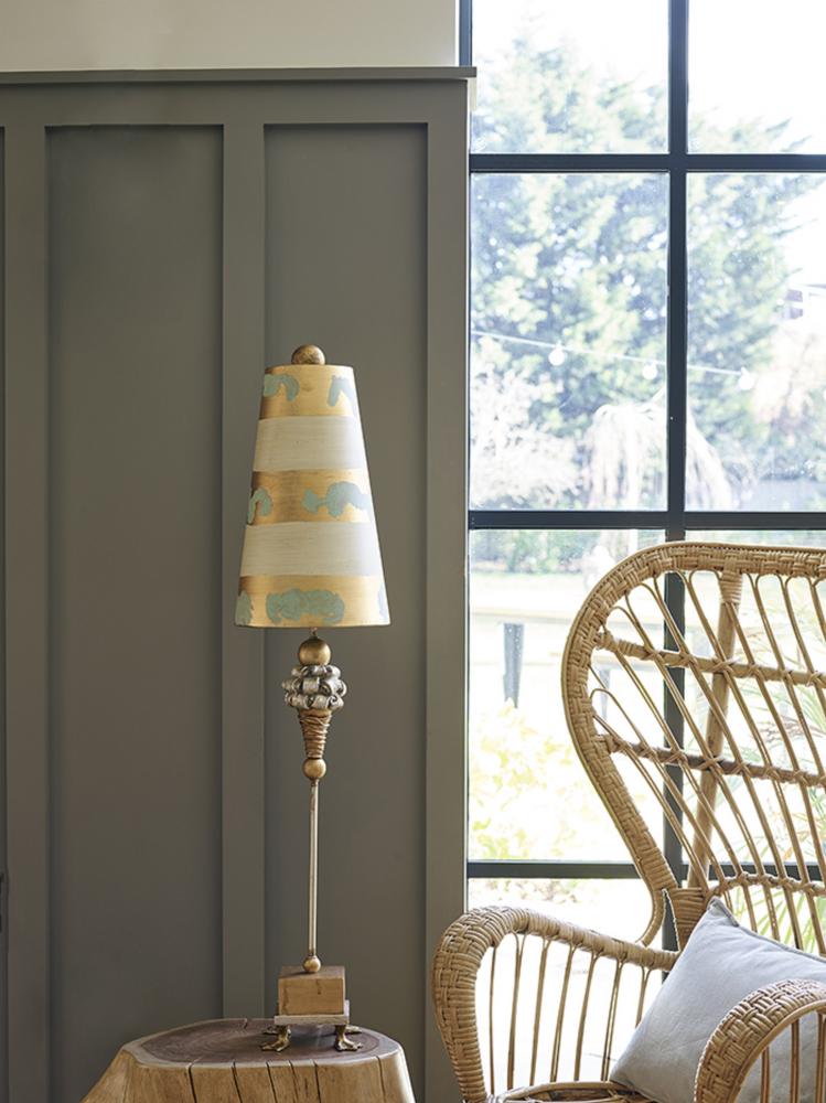 Pompadour Luxe Tall Buffet Lamp in Gold with Striped Shade