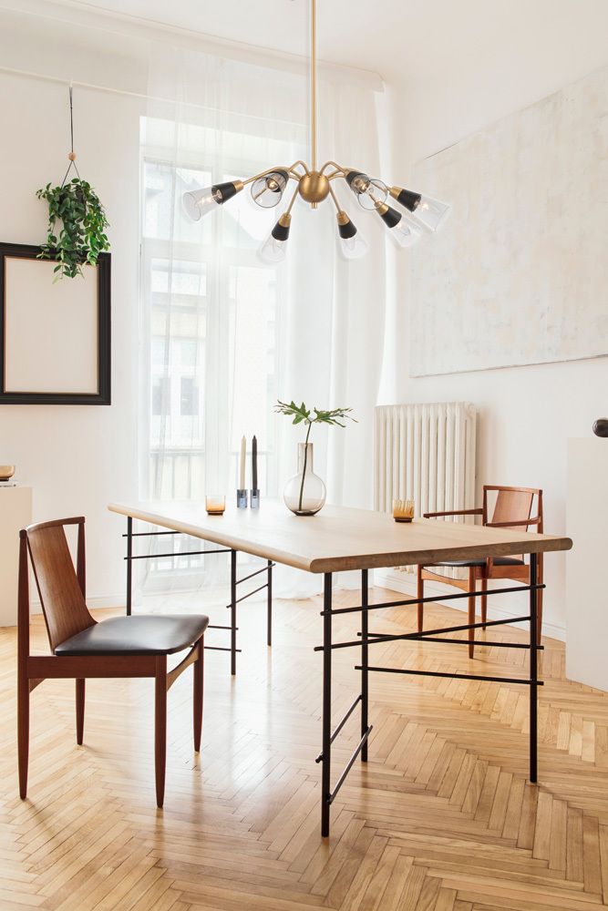 The Ponti Collection exhibits mid-century design with a petite cone shaped diffuser for a modern touch. Available in a fashionable 2-tone Matte Black w/ New Brass (BNB) finish. The vanity collection will create a clean, new-antique look in your bathroom.