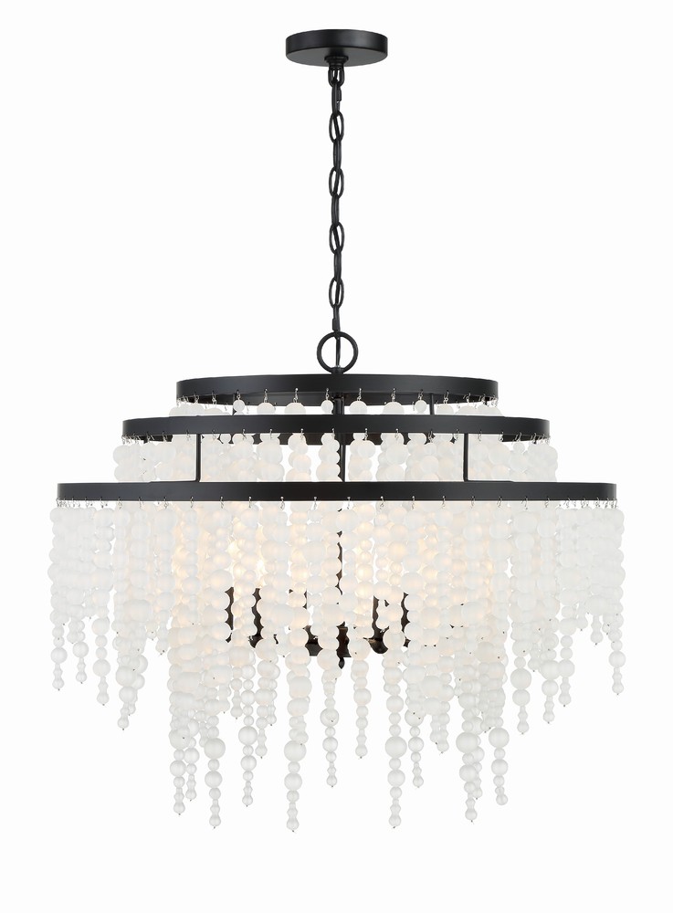 In a perfect combination of texture and materials, the Poppy chandelier's cascading in frosted glass or wooden beads create a rich visual impact on an interior. Whether the look is rustic, boho, or has a coastal vibe, this light is as versatile as stylish.