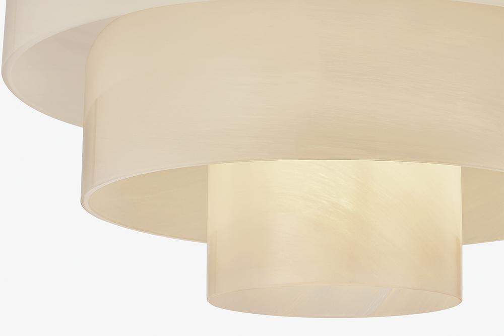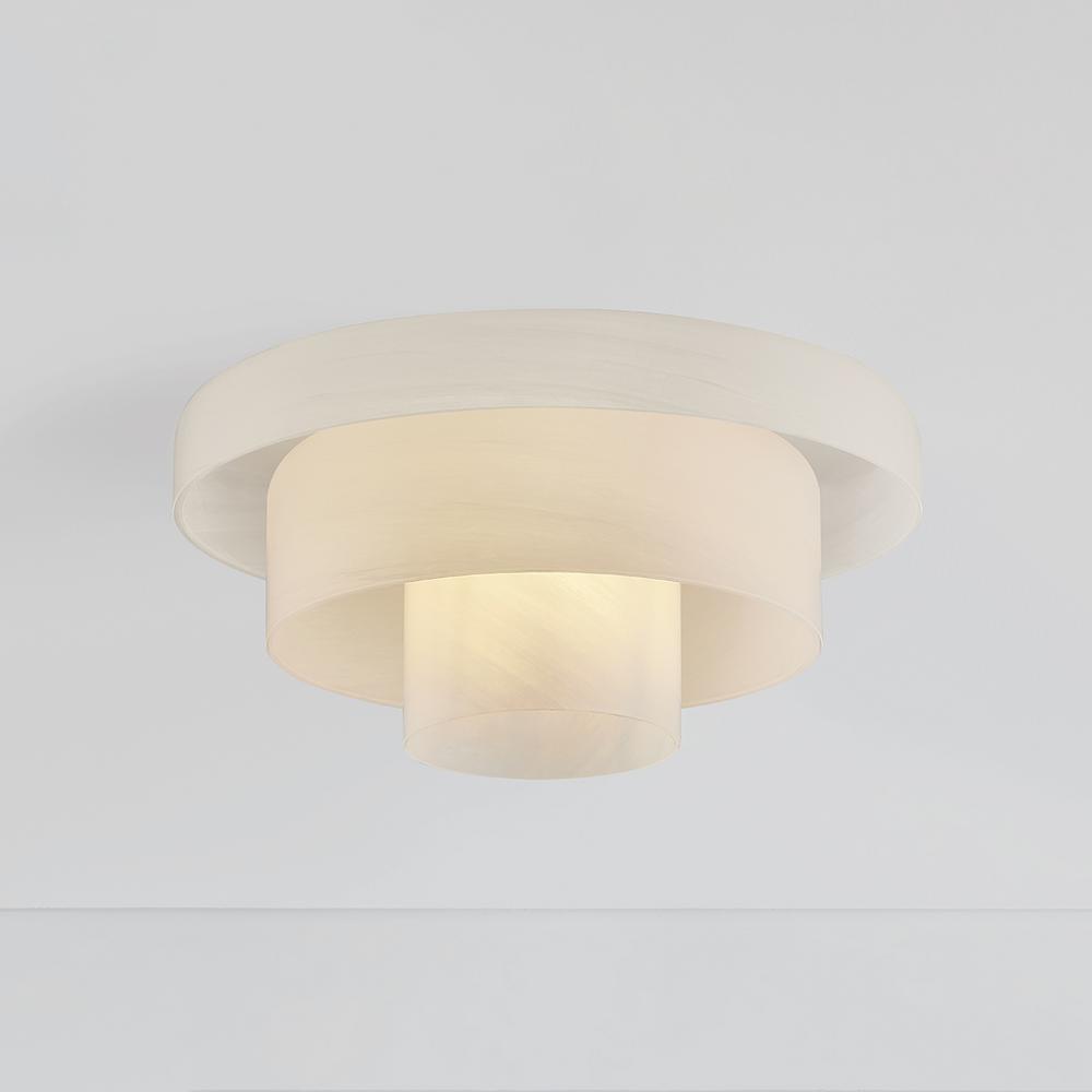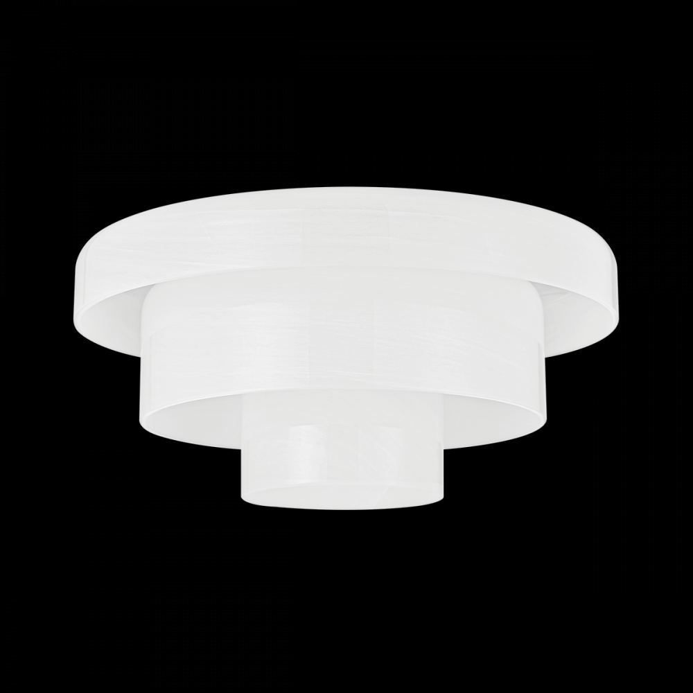 Inspired by an iconic mid-century design, this layered flush mount makes a bold style statement. Three concentric clear cloud glass shades surround a central light bulb, reducing glare. The varied heights of the glass allow the light to glow outwards from all points of the fixture.