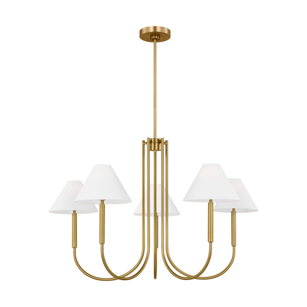 Porteau by Drew & Jonathan Scott is a sleek, chic, contemporary design featuring an updated j-arm style. Made from steel, Porteau features a classic silhouette with curved arms branching from a central rod. Each arm is topped with a candle-style sconce for 60W candelabra bulbs (sold separately), while small fabric drum shades diffuse light for a warm glow.